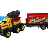 - Kompletní set: 2 vozidla s přívěsy, vrtulník, 6 dinosaurů a výměnné kleště