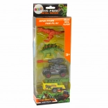 - 2 dinosauři, terénní auto s raketometem, přívěs s klecí, originální balení