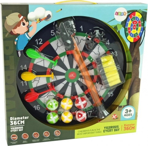 Oboustranný terč umožňuje bezpečnou hru díky měkkému povrchu a plastovým šipkám se zaoblenými hroty.