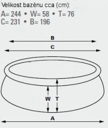 Objem cca 880 litrů při 80 % napuštění zajišťuje dostatek vody pro cachtání i lehké plavání dětí. Bazén se snadno udržuje, rychle vypustí a mimo sezónu se jednoduše složí a uskladní.