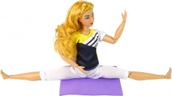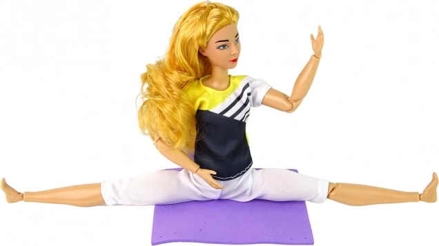 Vlasy lze česat a upravovat, sportovní outfit podtrhuje tématické hraní. Podložka 12 × 10 cm umožní vytvořit vlastní mini studio jógy.