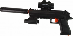 Pistole je napájena bateriemi, což umožňuje delší a napínavější hraní. Pro větší realističnost a efekt je součástí balení také tlumič, který činí výstřely realističtějšími a efektnějšími.