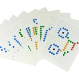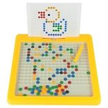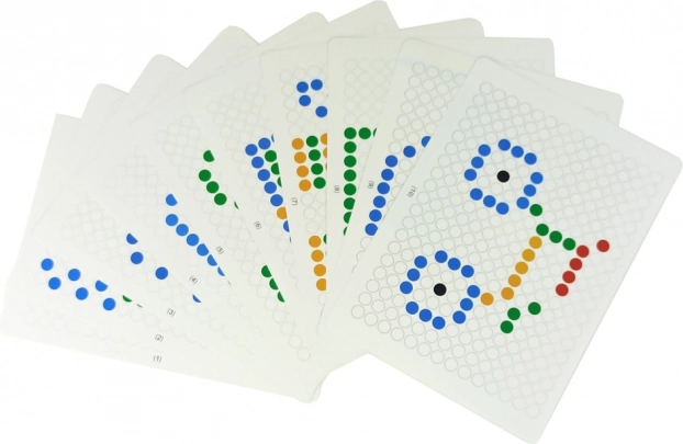 Barevné korálky v mřížce umožňují dětem skládat jednoduché i složitější obrázky a vzory a rozvíjet představivost.