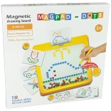 Tato žlutá magnetická tabule nabízí dětem zábavný způsob, jak tvořit obrázky a vzory pomocí magnetického pera a korálků v barvách červené, žluté, zelené, modré a černé. Díky přiloženým kartám s předlohami mohou děti snadno začít, nebo mohou popustit uzdu fantazii a tvořit vlastní motivy.