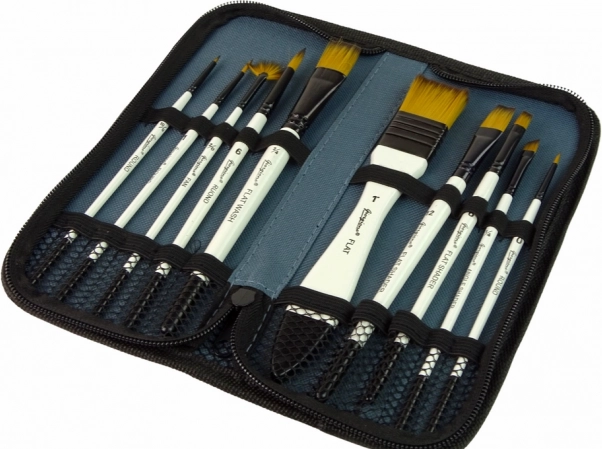 Tato umělecká sada nabízí široký výběr štětců s různými tvary a velikostmi, které vám umožní tvůrčí svobodu při malování. Obsahuje štětce pro jemné i silné linie, vyplňování ploch, míchání barev a přesnou konturu. Každý štětec je vybaven měkkými štětinami, což zajišťuje plynulý a přesný tah. Dřevěné rukojeti zajišťují pohodlí a plnou kontrolu nad štětcem.