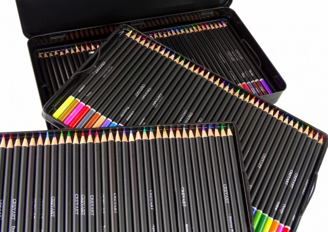 Kompletní sada pro kreativní tvoření: 120 uměleckých pastelek v elegantním kovovém pouzdře se 3 patry po 40 kusech. Pastelky mají délku 17 cm a černý lak pro pohodlný úchop. Praktická organizace, snadný přístup díky elastickým páskům, certifikace CE a shoda s EN71. Vhodné pro děti od 3 let i dospělé.