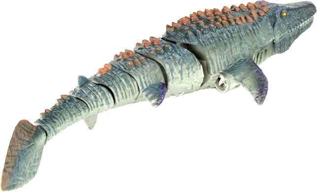 RC mosasaurus přináší jedinečnou kombinaci vzdělávání a zábavy. Realisticky zpracované tělo, kloubové články a pohyblivý ocas simulují přirozené plavání, zatímco integrovaný vodní spryskiwacz (vodní rozprašovač) na hřbetě umocní efekt divokého mořského plaza.