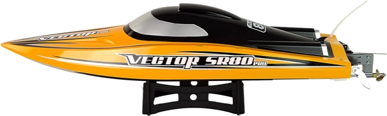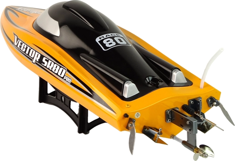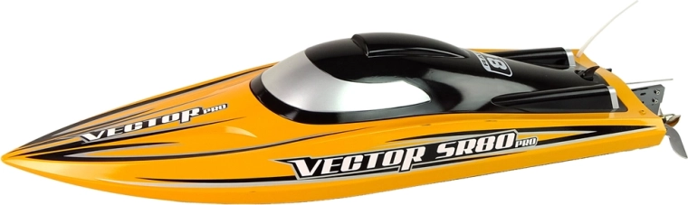 VECTOR SR80 Pro je výkonný dálkově řízený rychlostní člun se sladěným bezkartáčovým pohonem a vodním chlazením, který zajišťuje spolehlivost i při dlouhých jízdách ve vysoké rychlosti. Odolná plastová konstrukce a kovové kormidlo s lodní šroubem poskytují přesné reakce a stabilitu v zatáčkách.
