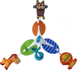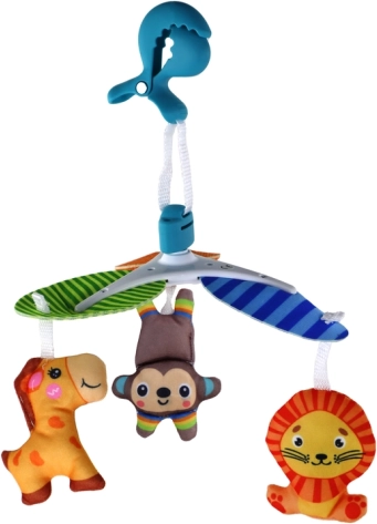 Karusel se upevňuje pomocí speciálního klipsu, což umožňuje jeho snadné a bezpečné přichycení na libovolné místo. Můžete jej umístit na postýlku, kočárek nebo nosítko, a tím poskytnout dítěti radost z barevných zvířátek kdykoli.