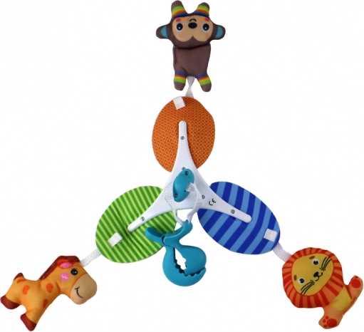 Sada obsahuje tři plyšové, pestré zvířátka: žirafu, lva a opičku. Ty jsou měkké na dotek a přátelské k dětem. Jejich jasné barvy přitahují dětskou pozornost a podporují senzorický rozvoj.