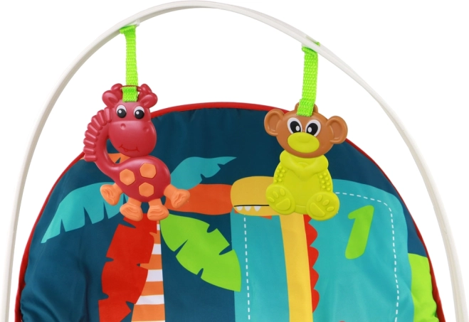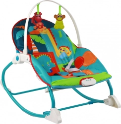 Dětské houpací lehátko 2v1 je ideální pro různé aktivity s rozměry 65 cm x 50 cm x 42 cm. Obsahuje odnímatelnou hrazdu s roztomilými hračkami z kvalitního plastu v kombinaci s gumou, jako je opička a žirafa, které skvěle stimulují smysly vašeho dítěte. Na textilii lehátka jsou také veselí dinosauři, kteří dítě zabaví.