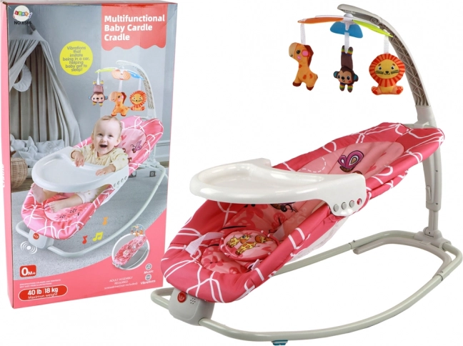 Praktické řešení od novorozence až do cca 3 let (do 18 kg). Měkké polstrování, bezpečnostní pásy a robustní konstrukce zajistí pohodlí i jistotu při hraní i odpočinku. Růžové provedení vytváří příjemné a podnětné prostředí pro miminko.