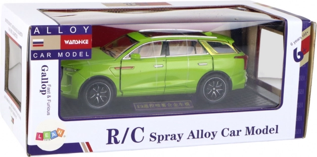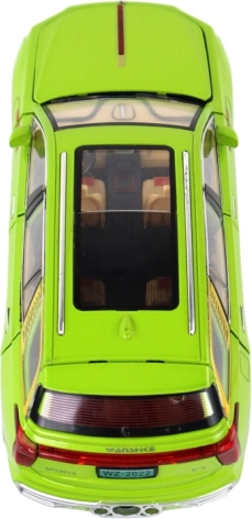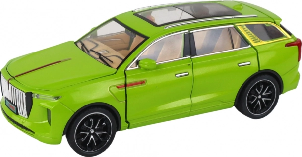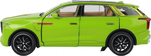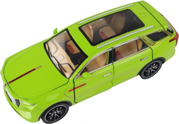 Model SUV hračka vyniká realistickými detaily, jako jsou černá kola, stříbrné prvky a viditelný interiér. Vyrobeno z plastu, tento model je věrnou kopií skutečného SUV.