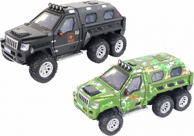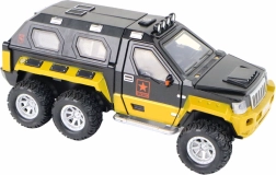 Realisticky zpracované terénní auto pro malé dobrodruhy nabízí výsuvný kanón, světelné a zvukové efekty a setrvačníkový pohon pro dynamickou jízdu. Díky gumovým kolům se hladce pohybuje po různých površích, je vyrobeno z kvalitního plastu a dodává se ve 3 barvách (černá, žlutá, maskáčová). Napájení 3× AAA (nejsou součástí). Vhodné od 3 let. Rozměry 18 × 7 × 9,5 cm.