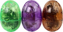 Skrz průhledný plast ihned uvidíte figurku uvnitř. Vejce o průměru 9 cm se snadno otevírá a umožňuje opakované ukládání hračky.