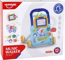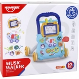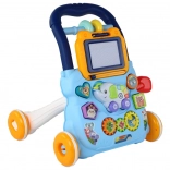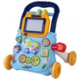 Modré interaktivní chodítko je skvělým pomocníkem při učení prvních krůčků a zároveň centruje pozornost dítěte díky bohaté nabídce aktivit. Přední panel tvoří odnímatelná kreslicí tabulka se stylusem, dále otáčivé převodovky, tlačítka a prvky pro procvičení jemné motoriky a koordinace oko–ruka.