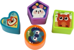 Barevné kostky různých tvarů a točící kolečka rozvíjejí logiku, koordinaci a zrakové vnímání. Ideální pro malé ručky i zábavné učení formou hry.