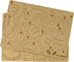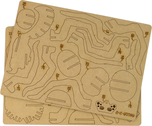 Dva archy z překližky s přesně vyřezanými a očíslovanými díly umožňují snadnou a čistou montáž bez nářadí.