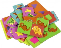 Puzzle jsou dvojstranné: jedna strana obsahuje obrázky dinosaurů na barevných pozadích pro snadné rozpoznávání zvířat a druhá strana obsahuje barevné tvary pro rozpoznávání tvarů a barev. S rozměry balení 23 cm x 17 cm x 6 cm je hra snadno přenosná a vhodná na cestování.
