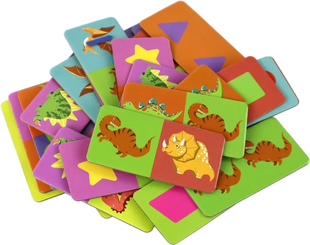 Představujeme edukativní sadu Logická hra Puzzle Domino Dinosauři. Tento set obsahuje 28 elementů, z nichž každý zobrazuje polovinu dinosaura. Vaše dítě může rozvíjet logické myšlení a soustředění tím, že skládá různé obrázky dinosaurů.