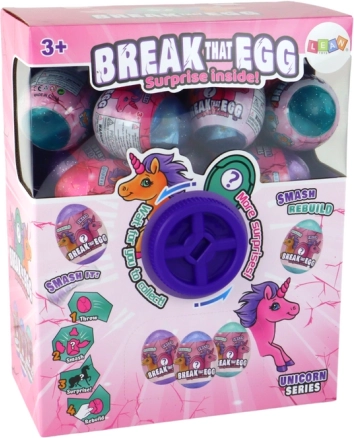 Sada vajec obsahující kouzelné jednorožce nabízí interaktivní a překvapivé možnosti pro děti, které se rády zanoří do světa fantazie. Vajíčka jsou umístěna ve speciální krabičce s losovacím mechanismem, který po otočení vpravo vydá jedno vejce, čímž dětem přináší moment nečekaného překvapení.