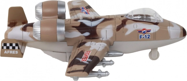 Vojenské stíhací letadlo Camo je úžasnou hračkou, která zaujme každého malého průzkumníka. Díky světelným a zvukovým efektům dodává hře na autentičnosti a podporuje rozvoj motorických schopností. Například při rychlém pohybu umožňuje dětem simulovat různé scénáře a akce spojené s vojenskými letadly. K dispozici je v třech barevných variantách: modro-šedé, šedé a béžovo-hnědé. Hračka je určena pro děti od 3 let a splňuje certifikát CE a normu EN71.