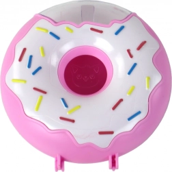 Stylové plastové pouzdro ve tvaru donutu pojme všechny oblíbené kosmetické poklady a díky řetízku se pohodlně nosí na cestách i na hřiště.