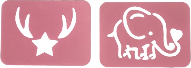 Šablony s motivem slona a hvězdy mají zaoblené rohy a jednoduché tvary, aby se s nimi dětem dobře pracovalo na nehtech i papíru.