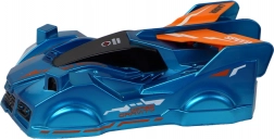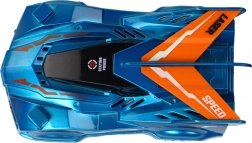 Modrý auto s ostrými hranami a dekory "LASER" a "SPEED" vyniká rychlostí a odolností.