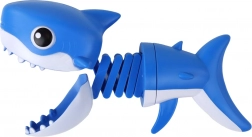 Objevte hravou kousací hračku ve tvaru modrého žraloka, která zaujme pistolovým spouštěcím mechanismem. Hlava žraloka je oddělena pružinou – po stisku spouště se pružina uvolní a tlama se rychle zavře, což vytváří efektní a zábavný skus. Ideální pro trénink koordinace oko–ruka a podporu představivosti.