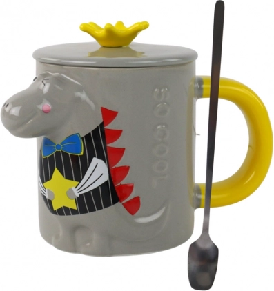 Tento designový keramický hrnek v šedém provedení zaujme výrazným 3D reliéfem dinosaura v pestrých barvách. Pohodlné žluté ouško a hladká glazura zajišťují příjemné každodenní používání, ať už doma, v kanceláři nebo ve škole.