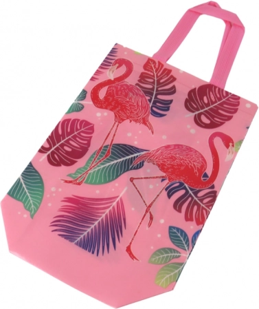 Stylová růžová dárková taška s motivem plameňáků dodá vašemu dárku eleganci a tropický šarm. Je vyrobena z odolného materiálu, který spolehlivě chrání obsah, a díky univerzálnímu designu se hodí na narozeniny, svátky i jiné příležitosti. Navíc je opakovaně použitelná.