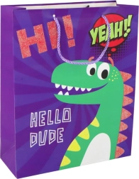 Hledáte originální a praktické balení dárku? Tato papírová dárková taška s dinosaurem ve fialové barvě je skvělou volbou pro narozeniny, svátky i oslavy. Zábavný motiv a jemně třpytivé prvky dodají každému dárku šmrnc, zatímco pevné provedení zajistí bezpečné přenášení.