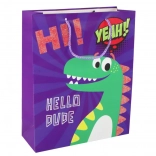 Hravý potisk s nápisy a dinosaurem dodá vašemu dárku osobitost a radostnou atmosféru – ideální pro narozeniny i dětské oslavy.