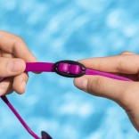 Plně nastavitelný silikonový pásek dovolí rychle přizpůsobit velikost a zajistit stabilitu i při dynamickém plavání.