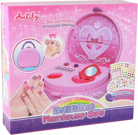 - Kufřík, zavírací zrcátko ve tvaru srdce, 2 prstýnky, dočasná tetování (hodinky, náhrdelníky, náušnice, prstýnky), samolepky na nehty