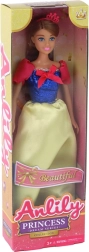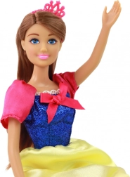 Představujeme vám kouzelnou loutku Anlily Princezna, ideální společník pro vaše malé snílky. S výškou 30 cm vyniká svou krásou a stylem. Nádherné dlouhé tmavé vlasy a modré oči přidávají na kráse. Vysoce stylové žluté šaty dotvořené modrou blýskavou horní částí s růžovými rukávy zaujmou na první pohled. Celkový vzhled doplňuje růžová čelenka s korunou a stylové růžové boty na podpatku.