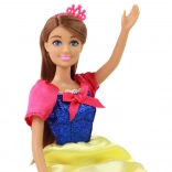 Loutka má krásné dlouhé tmavé vlasy a elegantní žluté šaty, které okouzlí každé dítě.