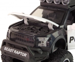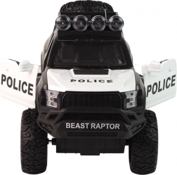 Objevte akční policejní jízdu s terénním vozem RAPTOR. Detailní zpracování, zvýšený podvozek a velká kola s gumovým běhounem zajišťují skvělou přilnavost na různých površích, zatímco LED světla a zvuk sirény dodají hře realistickou atmosféru.