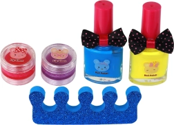Tato sada obsahuje vše, co děti potřebují pro svoji první kosmetickou zábavu. Součástí jsou různé doplňky pro zdobení nehtů, jako jsou samolepky a dva komplety umělých nehtů v růžových a fialových odstínech. Přiložené laky na nehty v modré a žluté barvě umožňují tvořit unikátní vzory na nehty. Nezapomeňme na barevné stíny a lesky na rty, které dětem umožní kreativitou vytvořit různé stylizace.