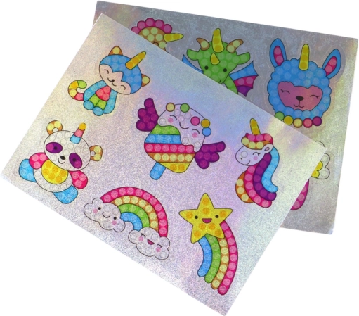 Tato kreativní sada umožní dětem stát se malými umělci. Stačí nabrat kamínek do speciálního pera a přilepit jej na označené místo samolepky – krok za krokem vznikne třpytivý motiv, který ozdobí sešit, batoh nebo penál.