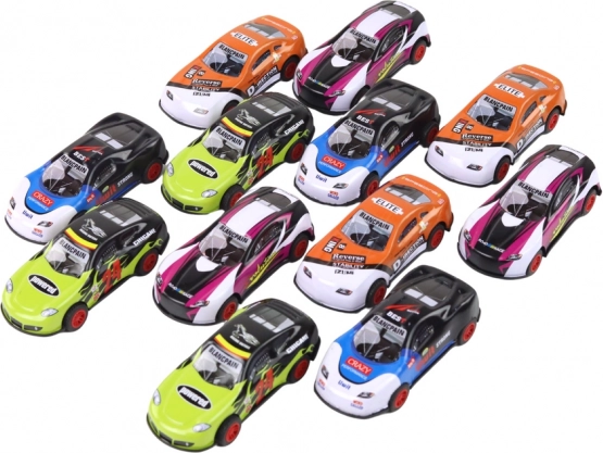 Objevte zábavu na plný plyn se sadou 12 sportovních autíček v měřítku 1:55. Každé auto má setrvačníkový pohon pro rychlou jízdu a dynamičtí manévry. Barevné provedení (růžová, modrá, zelená, oranžová) potěší malé závodníky a podpoří rozvoj fantazie a jemné motoriky. Vhodné od 3 let, certifikace CE, norma EN71.
