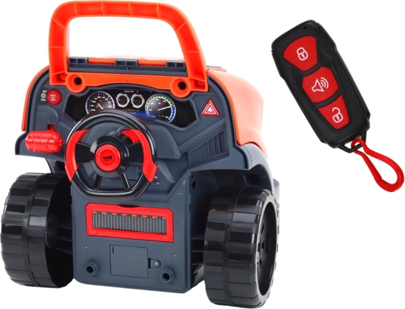 Hlavní panel nabízí realistické prvky – volant se otáčí doprava i doleva, klakson přidává zábavu a tlačítko nouzových funkcí spouští světelné a zvukové efekty. Pilot ve tvaru klíčku zvyšuje míru zapojení do hry a rozvíjí představivost. Díky dvěma velkým kolům lze set snadno přemisťovat mezi místnostmi, takže si děti vytvoří dílnu kdekoli.