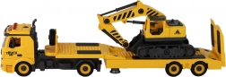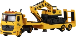 Přepravní rampa a pohyblivé rameno bagru umožní nakládku, převoz i kopání – ideální set pro kreativní scénáře.