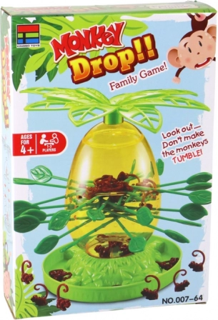 Postavte průhledný kmen, prostrkejte zelené „větvičky“, nasypte opičky a korunu zavřete. Hráči se střídají a opatrně vytahují tyčky. Každá opička, která spadne, se počítá. Vyhrává ten, komu spadne nejméně opiček.