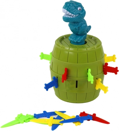 Zábavná rodinná hra, ve které hráči střídavě zasouvají barevné meče do sudu a snaží se, aby dinosaurus nevyskočil. Ideální pro děti od 3 let, rozvíjí postřeh, zručnost a sou koncentraci. Jednoduchá pravidla, rychlá kola a spousta napětí u každého tahu.