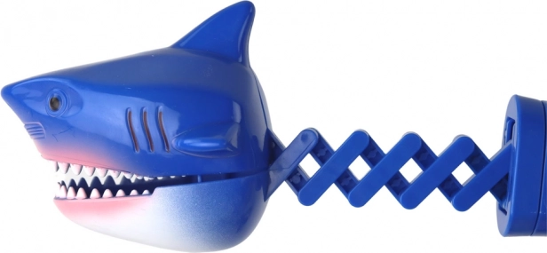Pružinová hlava žraloka se po stisku spouště rychle zavře a vytváří efektní chňapnutí, které děti opakovaně baví.