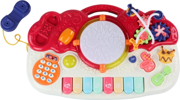 Obsahuje klávesnici, bubínek, vestavěný telefon a další různé zvukové a světelné funkce pro rozvoj hudebního vědomí dětí.