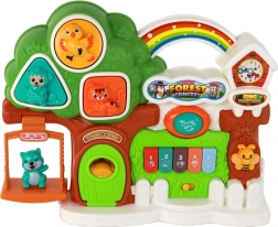 Hračka láká k prozkoumávání – v kmeni je schovaná nora s dvířky pro element překvapení. Díky promyšlenému designu rozvíjí koordinaci oko–ruka, poznávací schopnosti i smysl pro hudbu. Barevné provedení a motiv Forest Concert podněcují fantazii a dlouhé hodiny hraní.