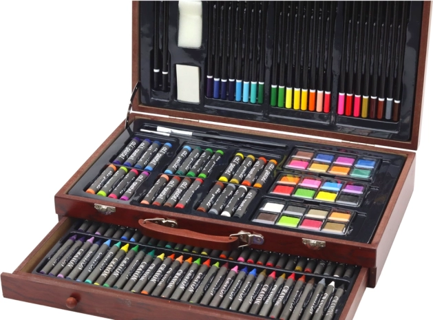 Naše dřevěná umělecká sada je bránou do světa umění. Otevírá možnosti nekonečné zábavy a kreativity pro všechny mladé talenty. S její pomocí si můžete vytvořit vlastní umělecké dílo pomocí pastelů, barev a dalšího příslušenství.